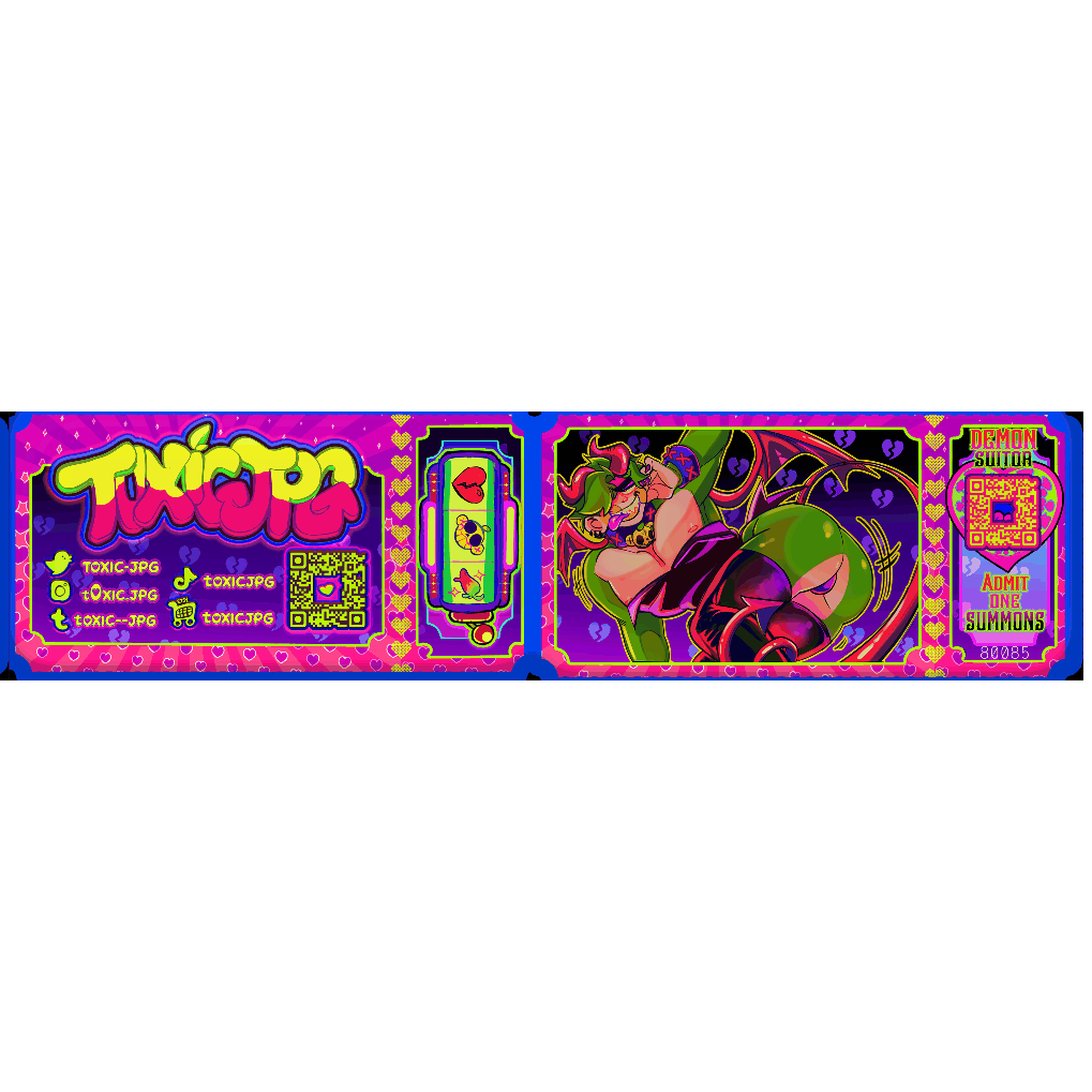 All of the artwork exhibited and sold is made by myself and only myself. No artificial intelligence was involved with making my artwork and I vow to never use ai as part of my creative process. I do not condone nor consent to use my work to train artificial intelligence. Any new artwork or merchandise is exclusively made by my own two hands. -Tokki (TOXICJPG)